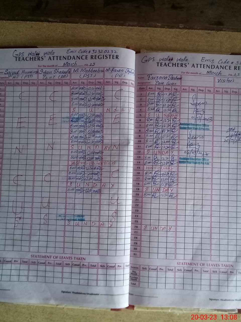 | Attendance Register | Head Teacher | MEA with School | Visit Proof |