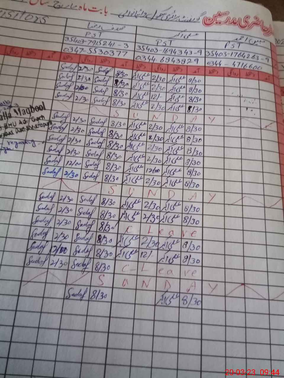 | CNIC | Full Name | Designation | R/C | Absence During Last Calender Month |