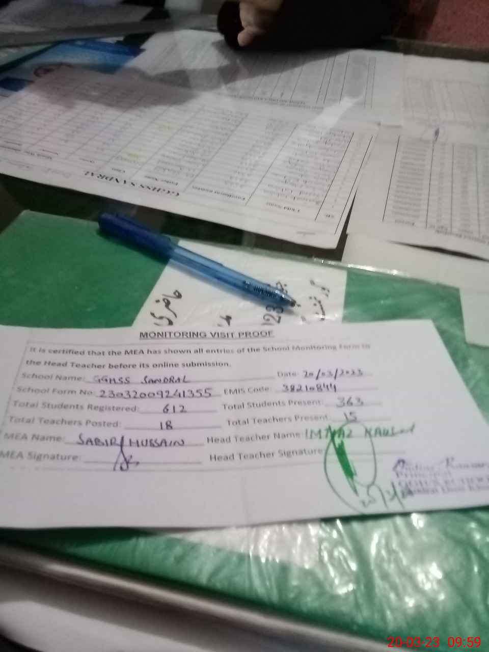 | Attendance Register | Head Teacher | MEA with School | Visit Proof |