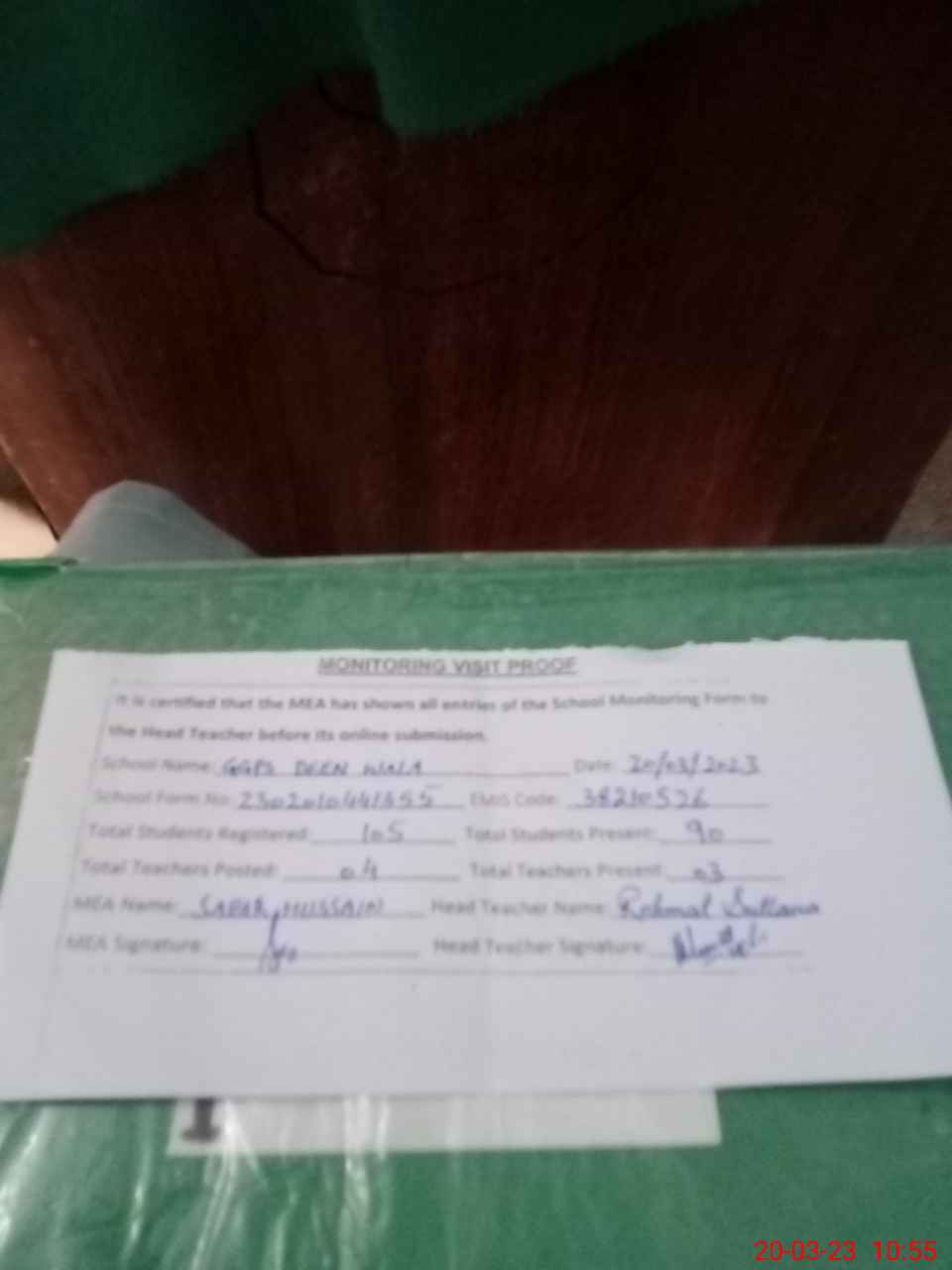 | Attendance Register | Head Teacher | MEA with School | Visit Proof |