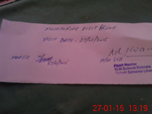 | School Visited by School Health & Nutrition Supervisor (No. of Visits) | 1 | Name1: | M Khalid | Name2: | |