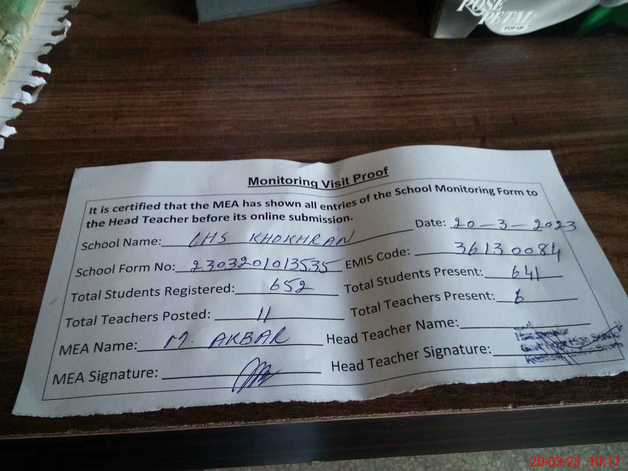 | EMIS Code: 36130084 | Name of School: GHS KHOKHRAN P/O SIKINDARABAD | |||