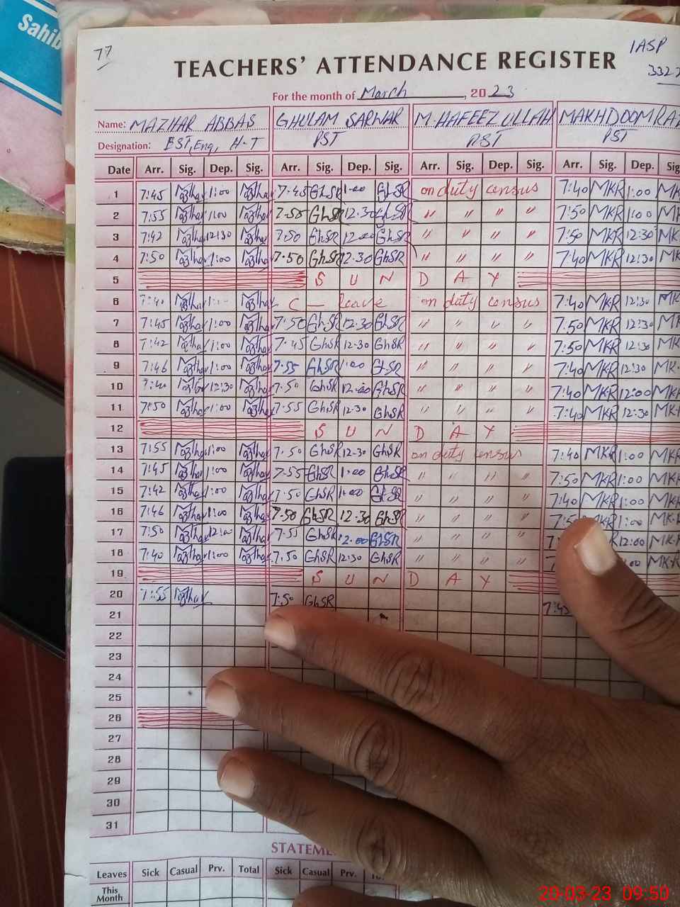 | Total no. of Classrooms: 4 No. of Classrooms Used for Teaching: 4 No. of Classrooms Storing Old Furniture, FTBs, etc: 0Comments if Any: Class rooms doors Paint required Head teacher reached at 0855 hrs where as this school run Insaaf afternoon shift school start time 0800 hrs |