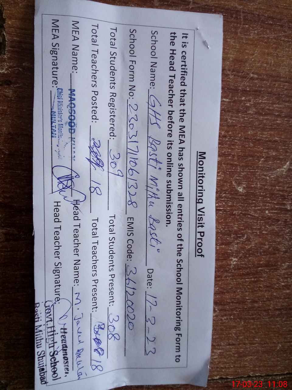 | EMIS Code: 36120020 | Name of School: GHS BASTI MITHU BASTI MITHU GHARBI | |||