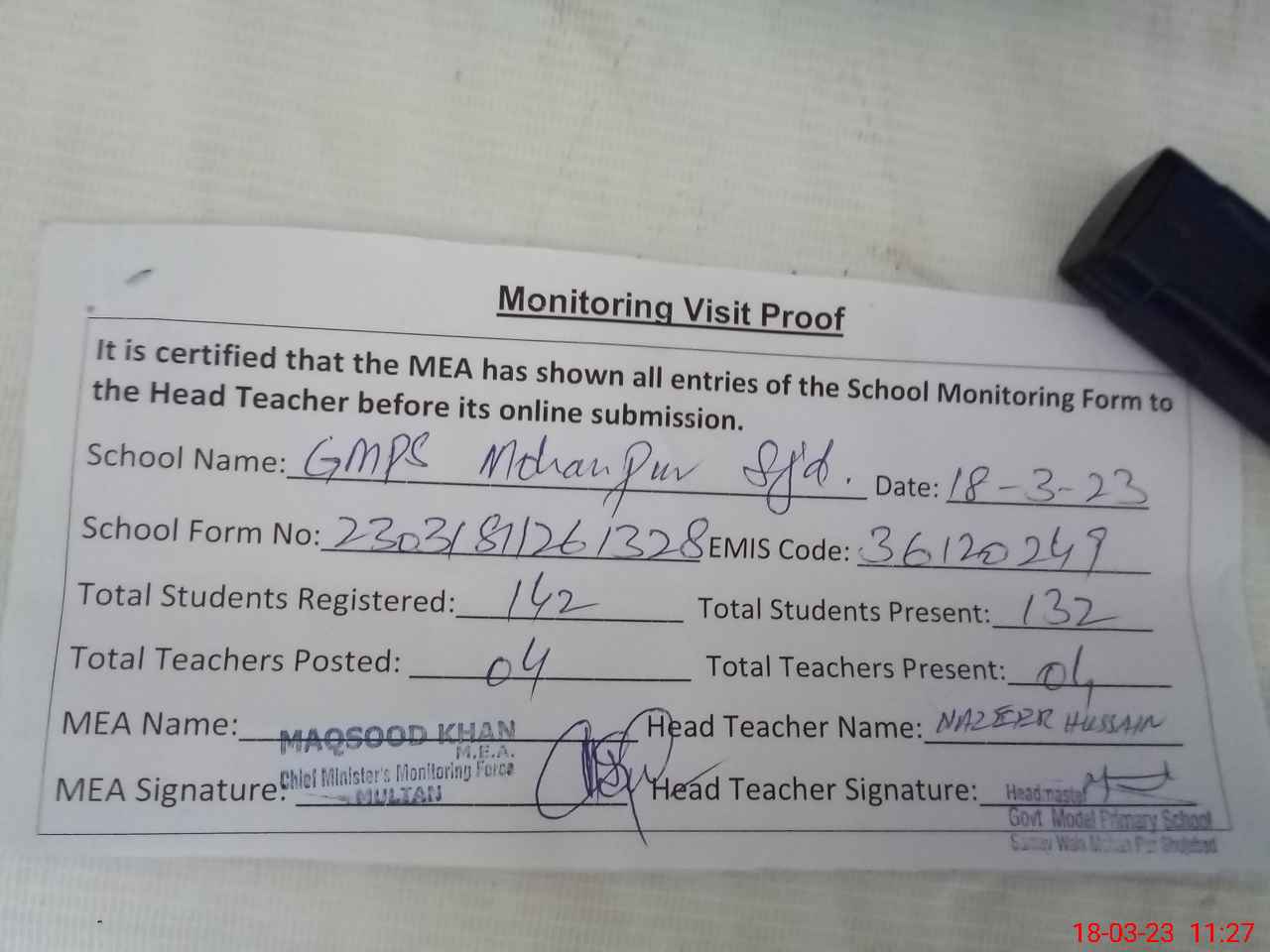 | EMIS Code: 36120249 | Name of School: GMPS MOHAN PUR | |||