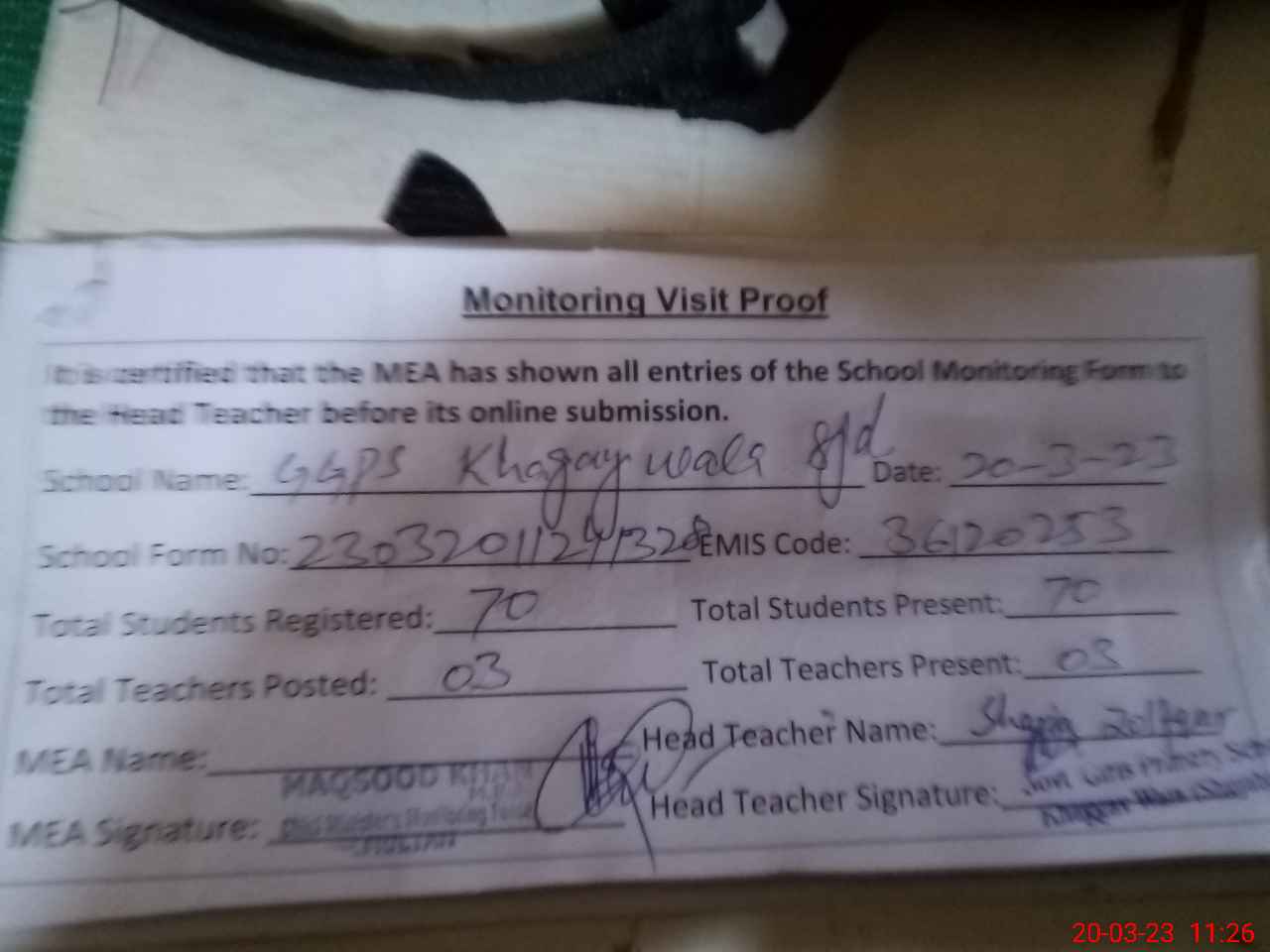 | EMIS Code: 36120253 | Name of School: GGPS KHAGAY WALA CHAH NAIB WALA SHUJABAD DISTT. MULTAN | |||