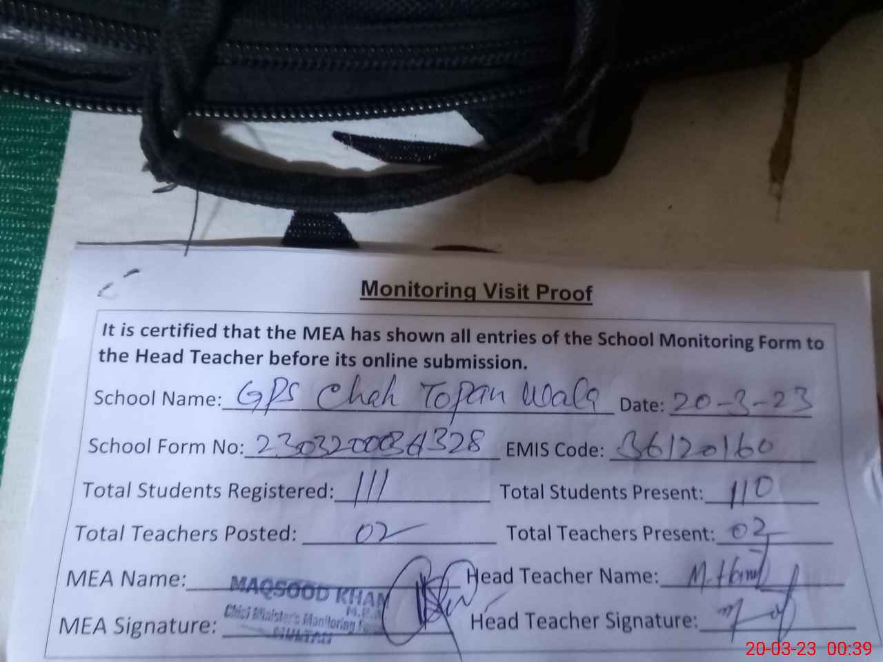 | EMIS Code: 36120160 | Name of School: GPS CHAH TOPAN WALA MUZA NASEER PUR | |||