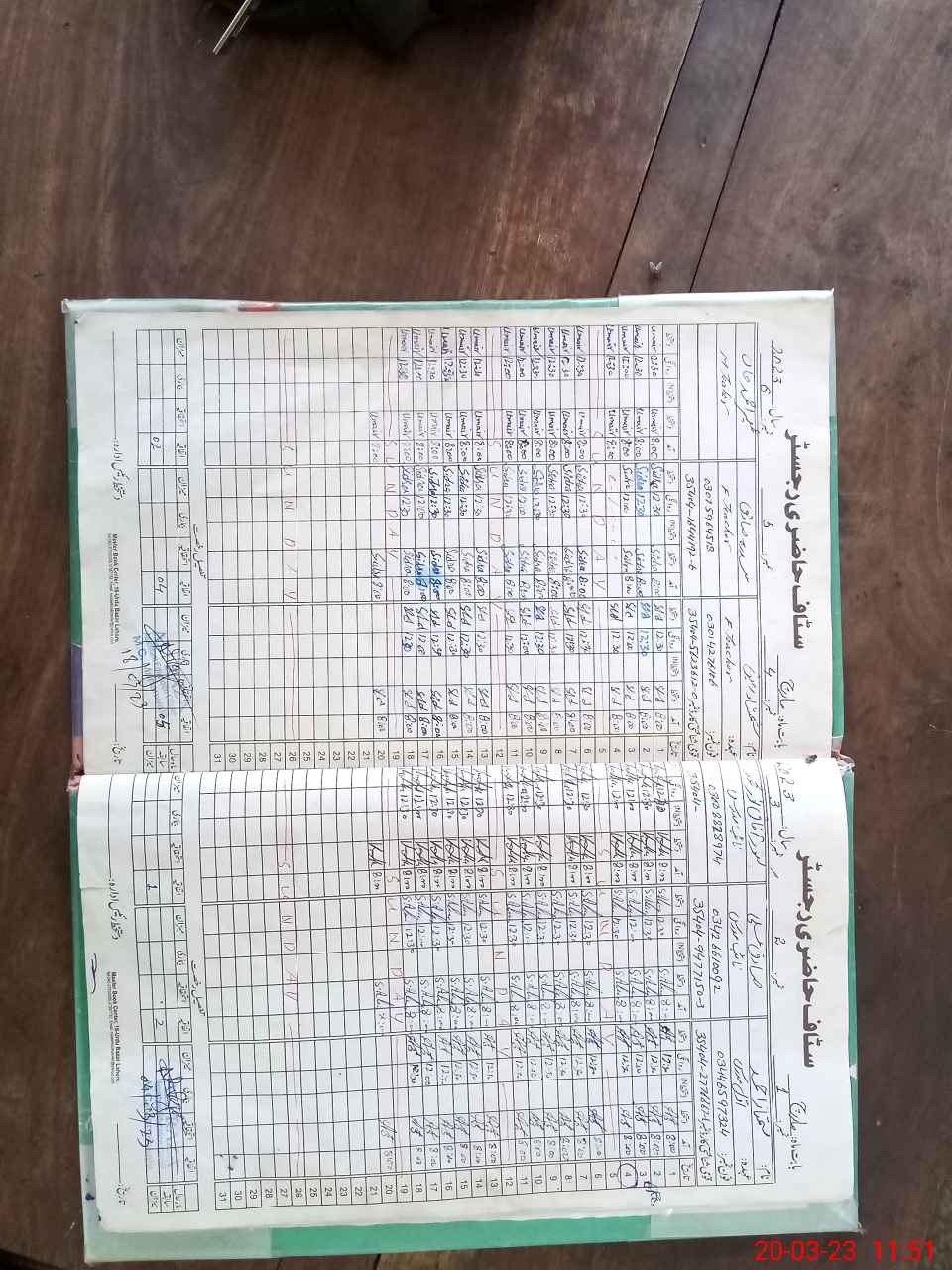 | CNIC | Full Name | Designation | R/C | Absence During Last Calender Month |