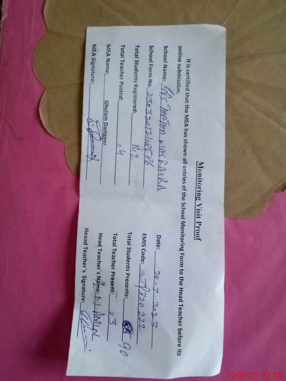 | EMIS Code: 39320222 | Name of School: GPS THATHA MUSRAIRA | |||