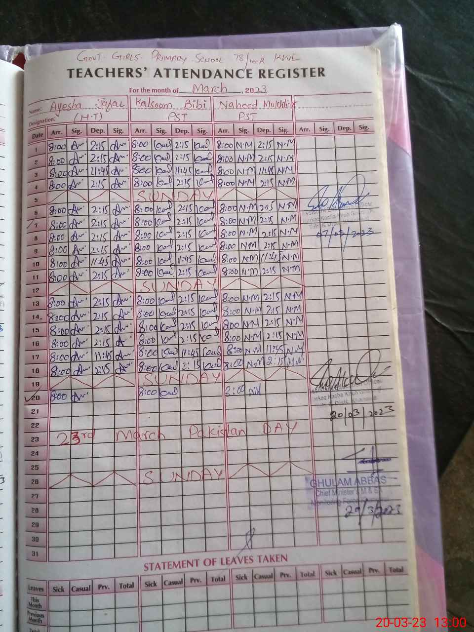 | Name: Na**** Mu**** Designation: (School Headmaster's/Headmistress's) PST Phone/Cell Number: 03**** |