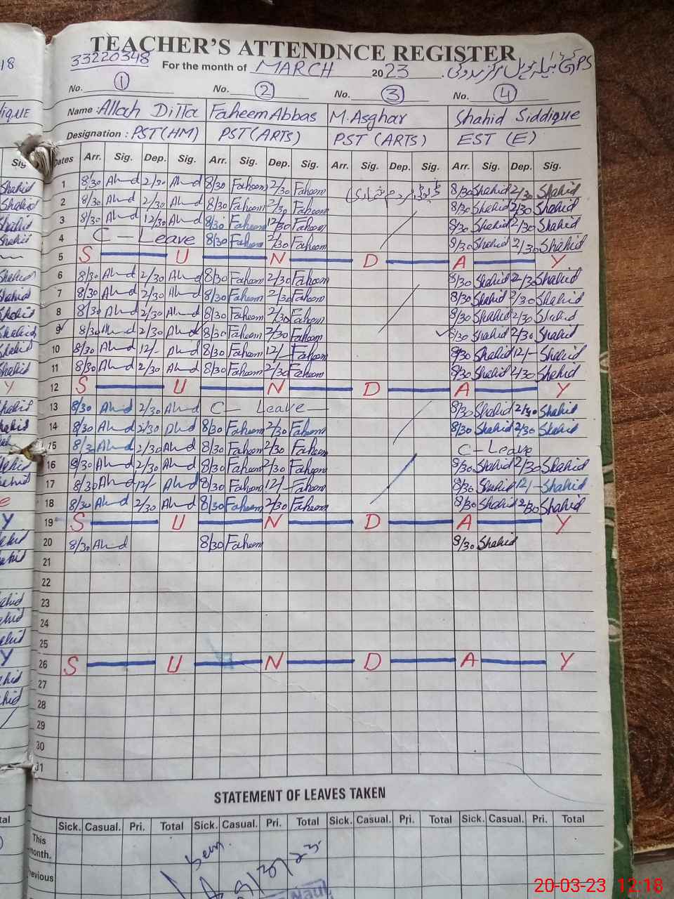 | Name: AL**** DI**** Designation: (School Headmaster's/Headmistress's) PST Phone/Cell Number: 03**** |