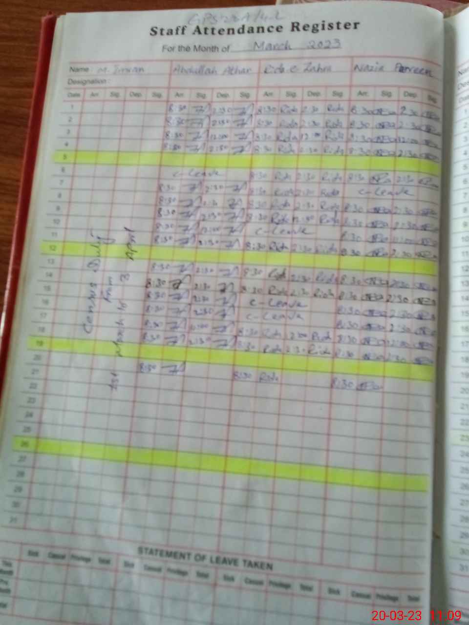 | CNIC | Full Name | Designation | R/C | Absence During Last Calender Month |