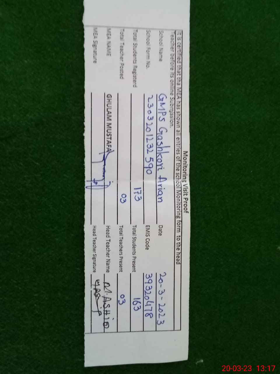 | EMIS Code: 39320478 | Name of School: GMPS GASHKORI ARAIAN | |||
