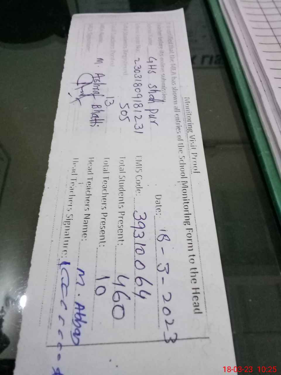 | EMIS Code: 39310064 | Name of School: GHS SHAH PUR | |||