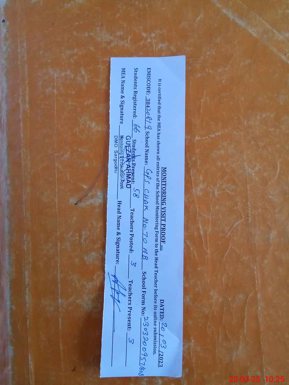 | EMIS Code: 38420819 | Name of School: GPS CHAK NO.70 NB | |||