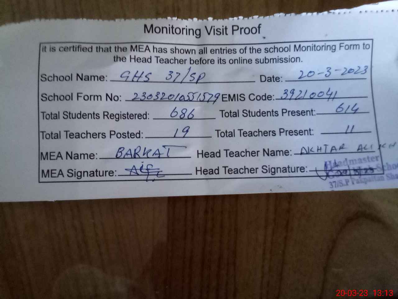 | EMIS Code: 39210041 | Name of School: GHS CHAK 37 SP | |||