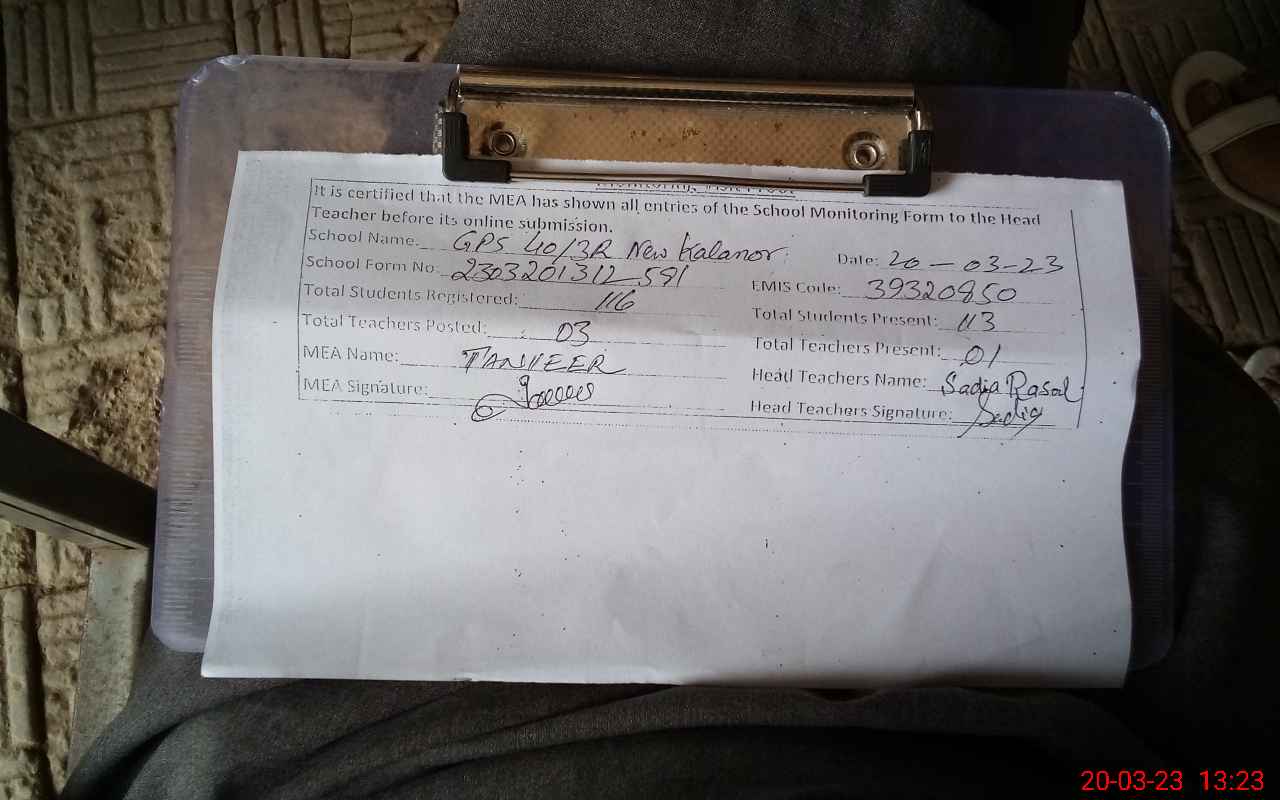 | EMIS Code: 39320950 | Name of School: GPS 40/3.R NEW KALA NAUR | |||