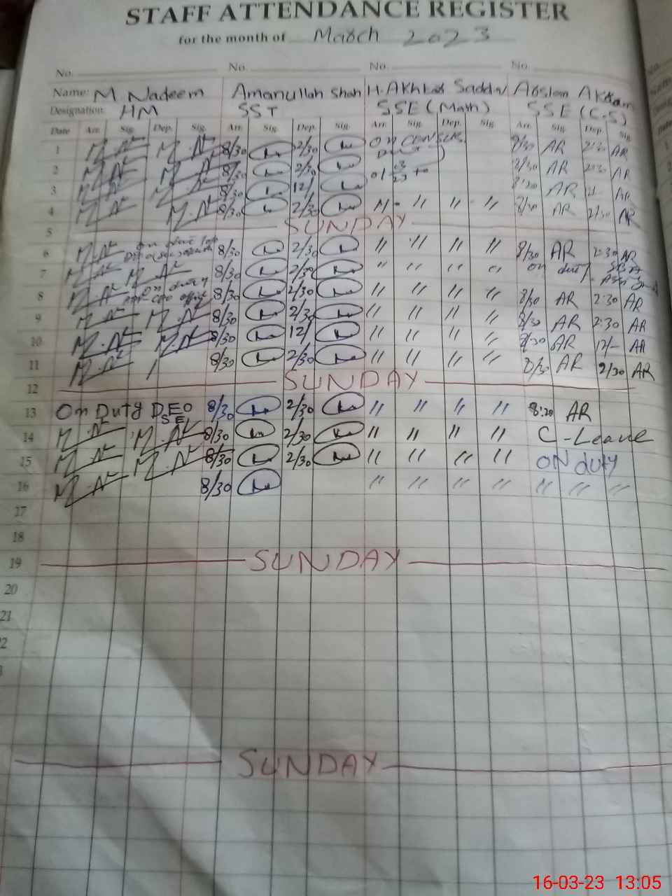 | CNIC | Full Name | Designation | R/C | Absence During Last Calender Month |