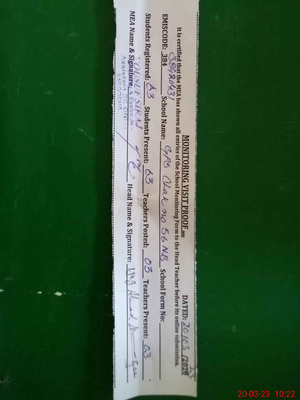 | EMIS Code: 38420431 | Name of School: GPS CHAK NO.56 NB | |||