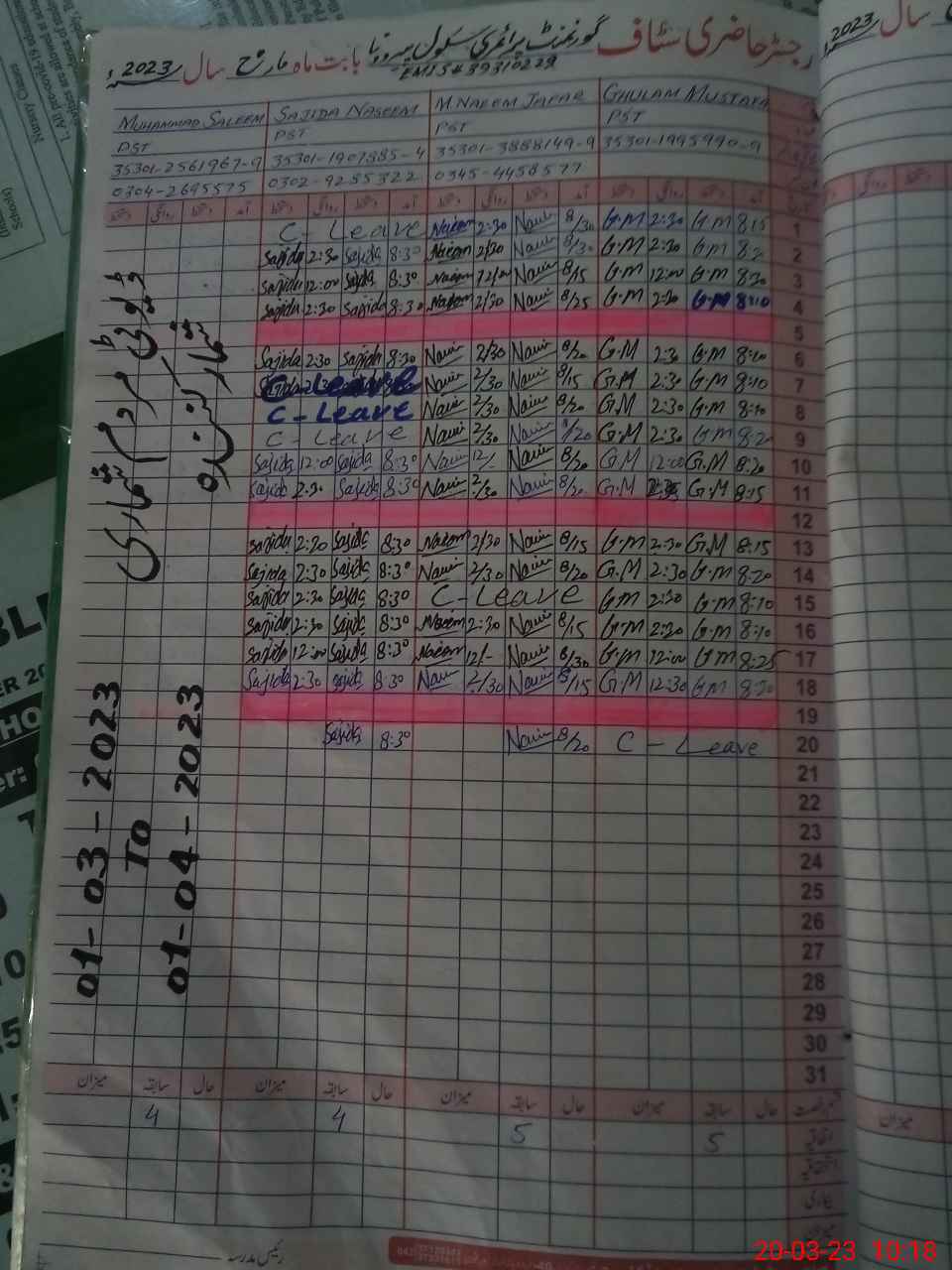 | Name: Mu**** Sa**** Designation: (School Headmaster's/Headmistress's) PST Phone/Cell Number: 03**** |