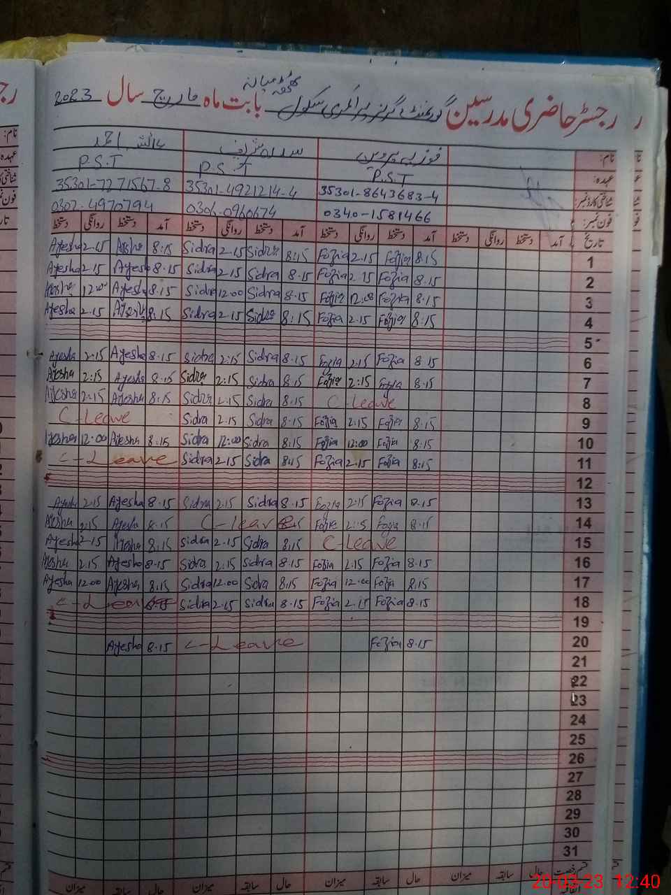 | Name: Sh**** Ra**** Designation: (School Headmaster's/Headmistress's) PTC/JV Phone/Cell Number: 03**** |
