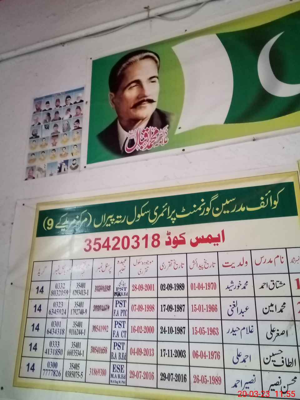 | District: SHEIKHUPURA | Tehsil: MURIDKE | Markaz: AHDIAN-MALE | Level: Primary | |
