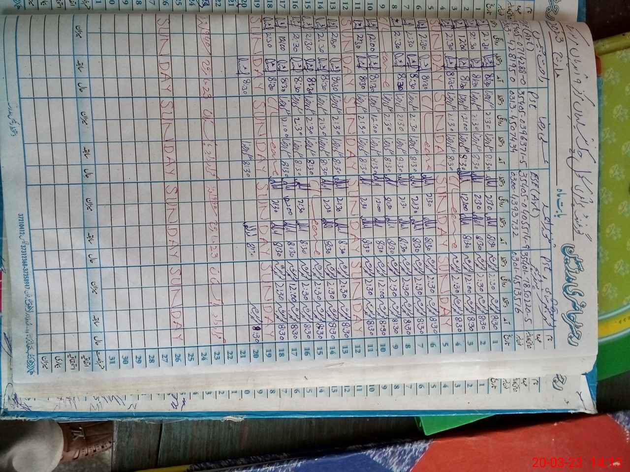 | CNIC | Full Name | Designation | R/C | Absence During Last Calender Month |