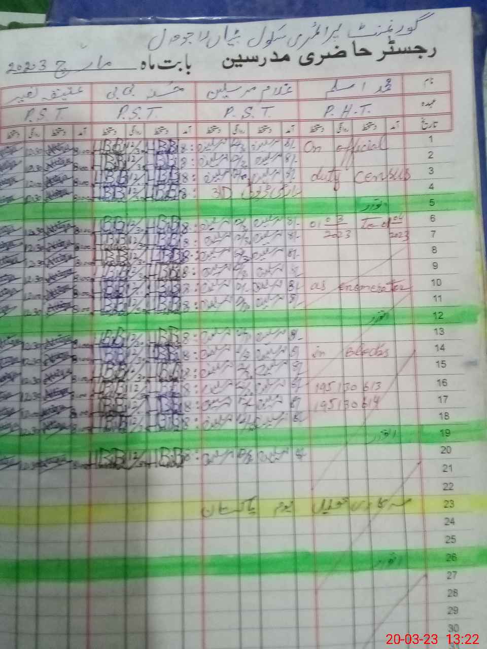 | Name: MAs**** Designation: (School Headmaster's/Headmistress's) PST/PTC/JV Phone/Cell Number: 03**** |