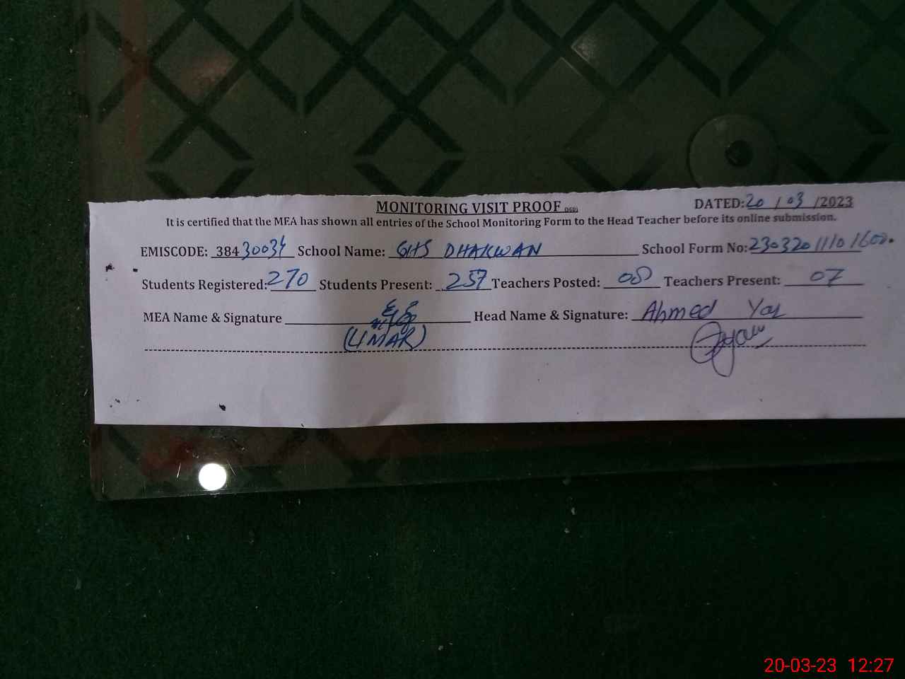 | EMIS Code: 38430034 | Name of School: GHS DHAKWAN | |||