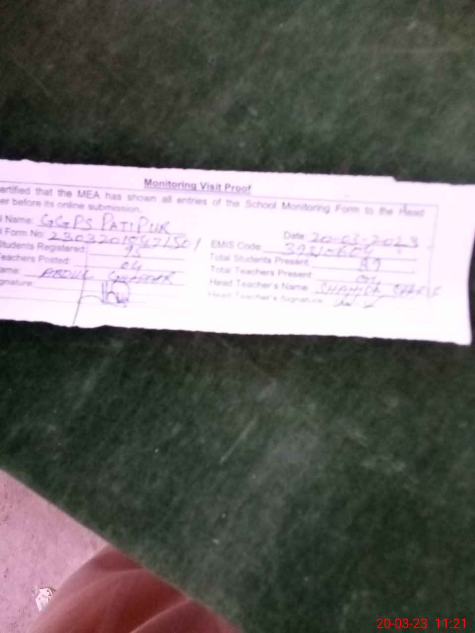 | Attendance Register | Head Teacher | MEA with School | Visit Proof |