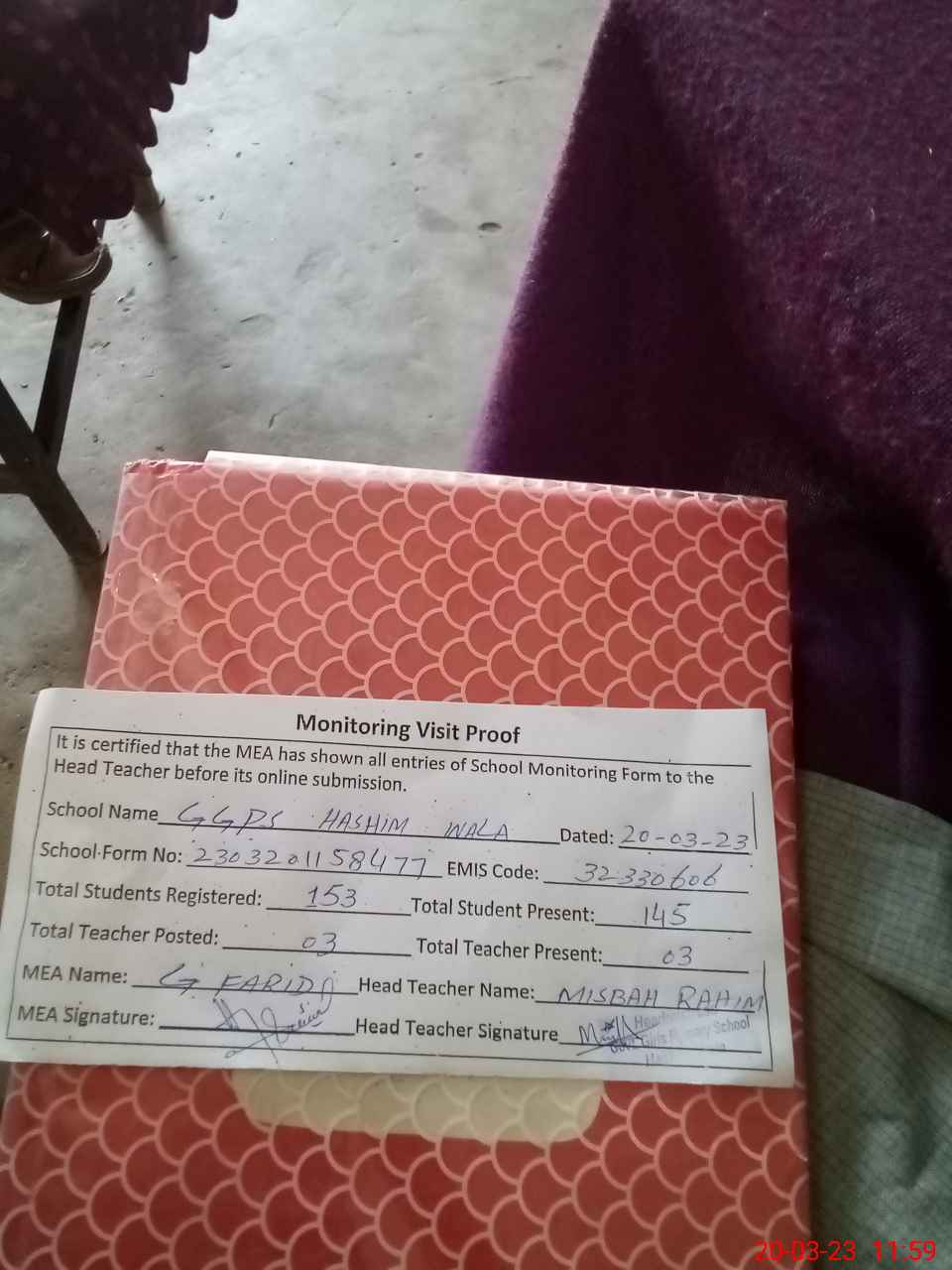 | EMIS Code: 32330606 | Name of School: GGPS HASHIM WALA | |||
