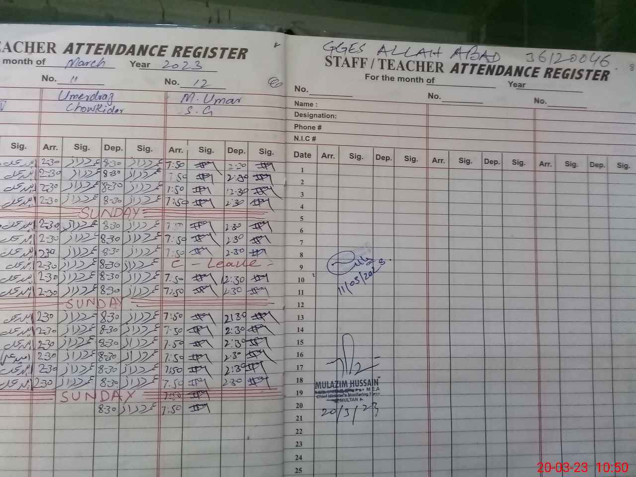 | Name: Uz**** Iq**** Designation: (School Headmaster's/Headmistress's) SST Phone/Cell Number: 03**** |