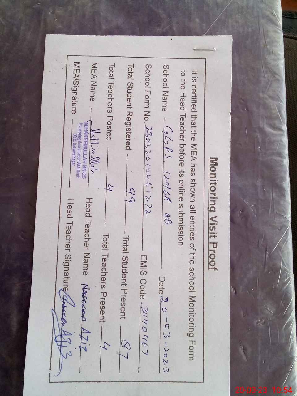 | EMIS Code: 31140467 | Name of School: GGPS CHAK NO 120/6-R B | |||