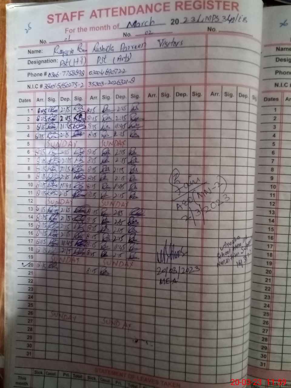 | Name: SA**** KH**** Designation: (School Headmaster's/Headmistress's) PST Phone/Cell Number: 03**** |