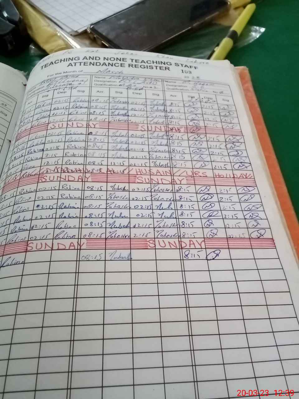| CNIC | Full Name | Designation | R/C | Absence During Last Calender Month |