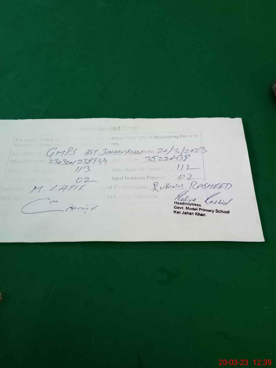 | EMIS Code: 35220438 | Name of School: GMPS KOT JAHAN KHAN | |||