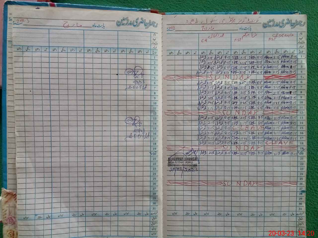 | Name: AB**** PA**** Designation: (School Headmaster's/Headmistress's) PST Phone/Cell Number: 03**** |