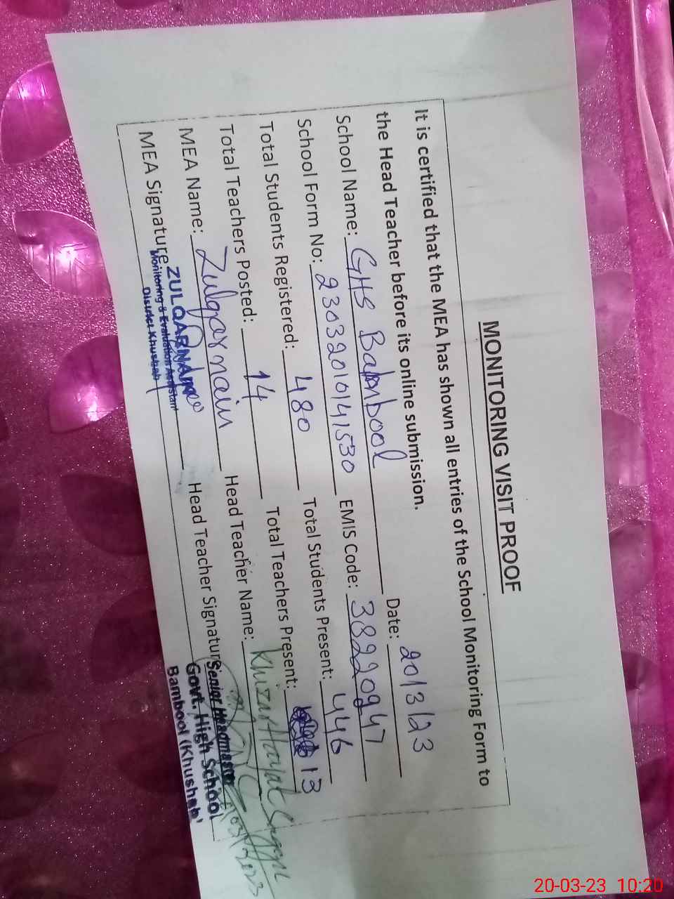 | EMIS Code: 38220247 | Name of School: GHS BAMBOOL | |||