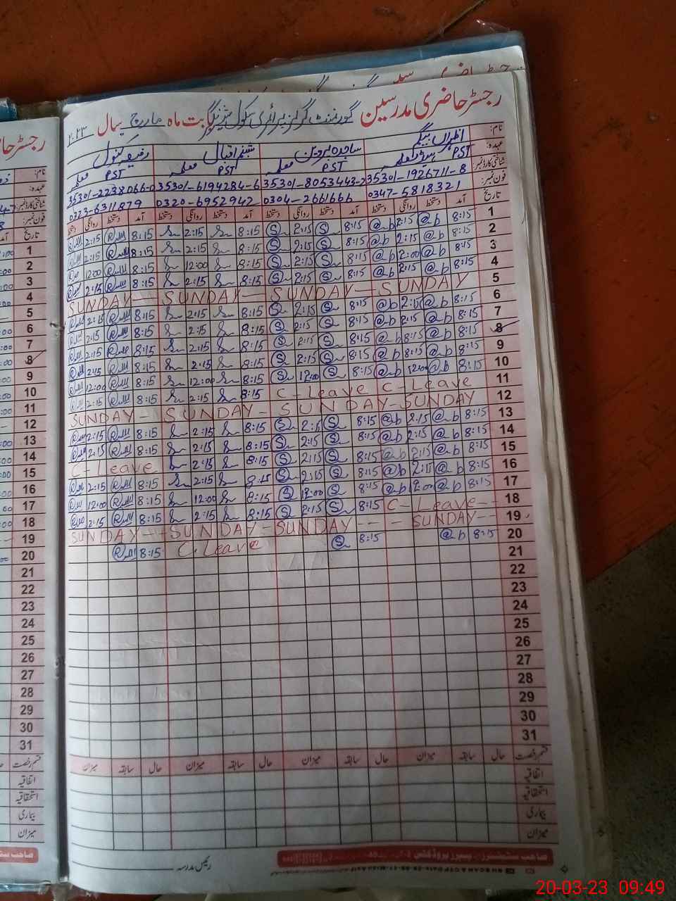 | Name: AZ**** Be**** Designation: (School Headmaster's/Headmistress's) PST Phone/Cell Number: 03**** |