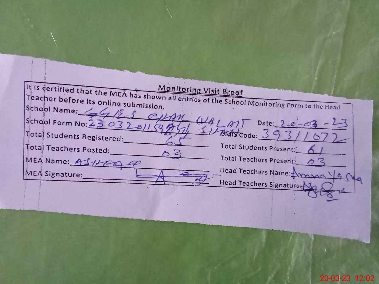 | EMIS Code: 39311072 | Name of School: GGES CHAK WALAIT ALI SHAH | |||