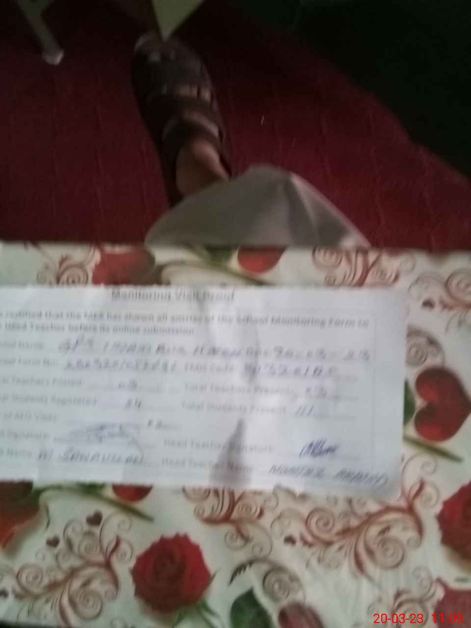 | Attendance Register | Head Teacher | MEA with School | Visit Proof |