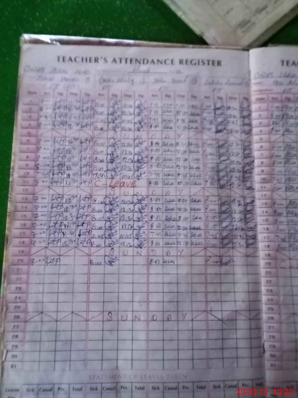 | Leave | Duty | Absent | Maternity | Medical | Ex- Pak |