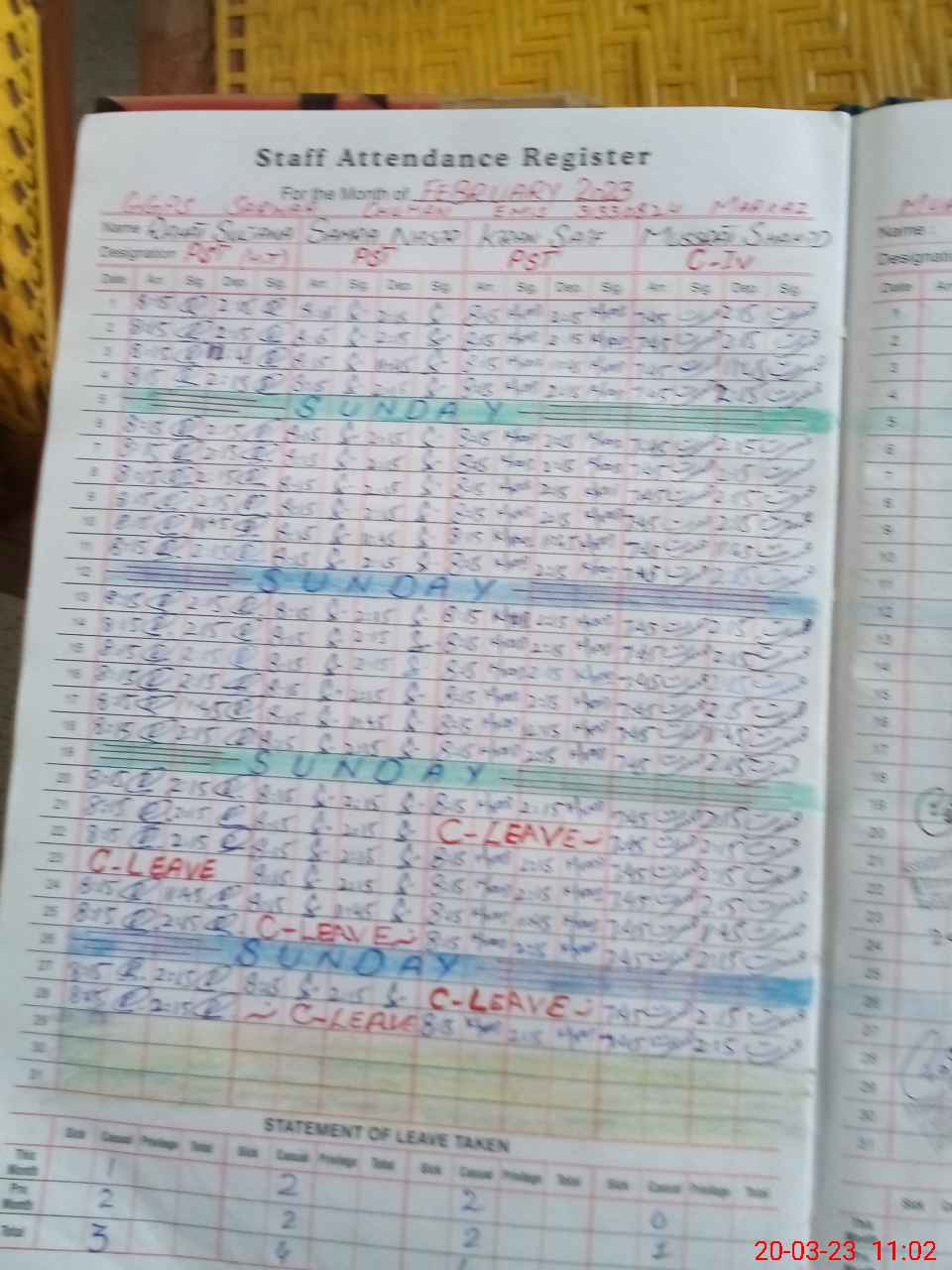 | CNIC | Full Name | Designation | R/C | Absence During Last Calender Month |