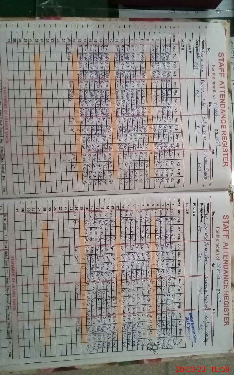 | CNIC | Full Name | Designation | R/C | Absence During Last Calender Month |