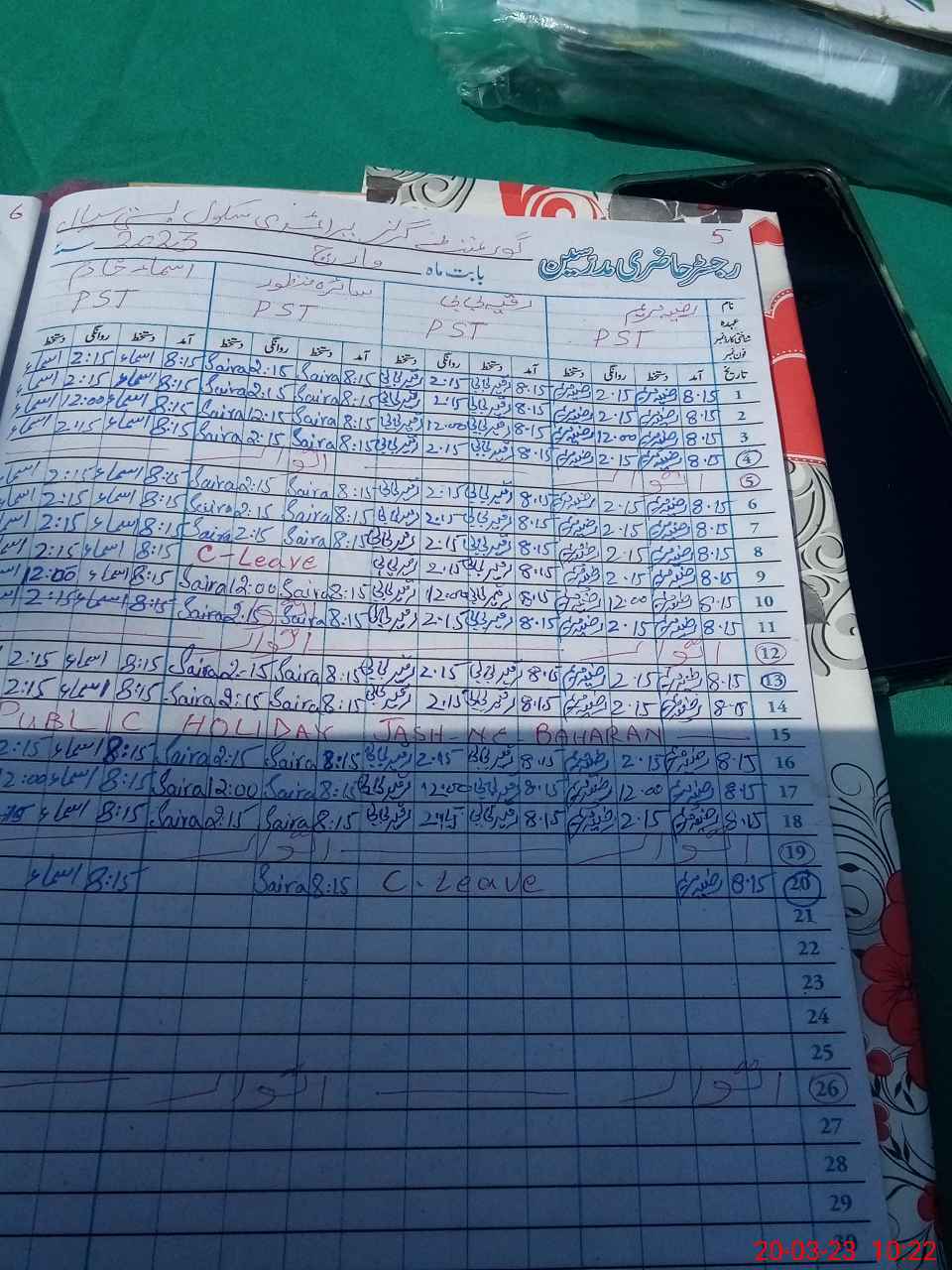 | Name: RA**** MA**** Designation: (School Headmaster's/Headmistress's) PST Phone/Cell Number: 03**** |