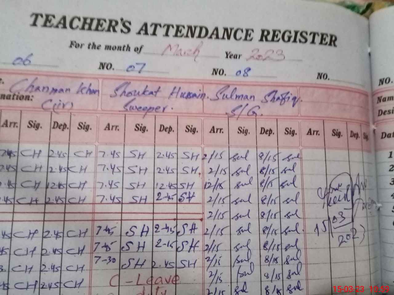 | Name: SH**** MU**** Designation: (School Headmaster's/Headmistress's) S.S.T.(GEN) Phone/Cell Number: 03**** |