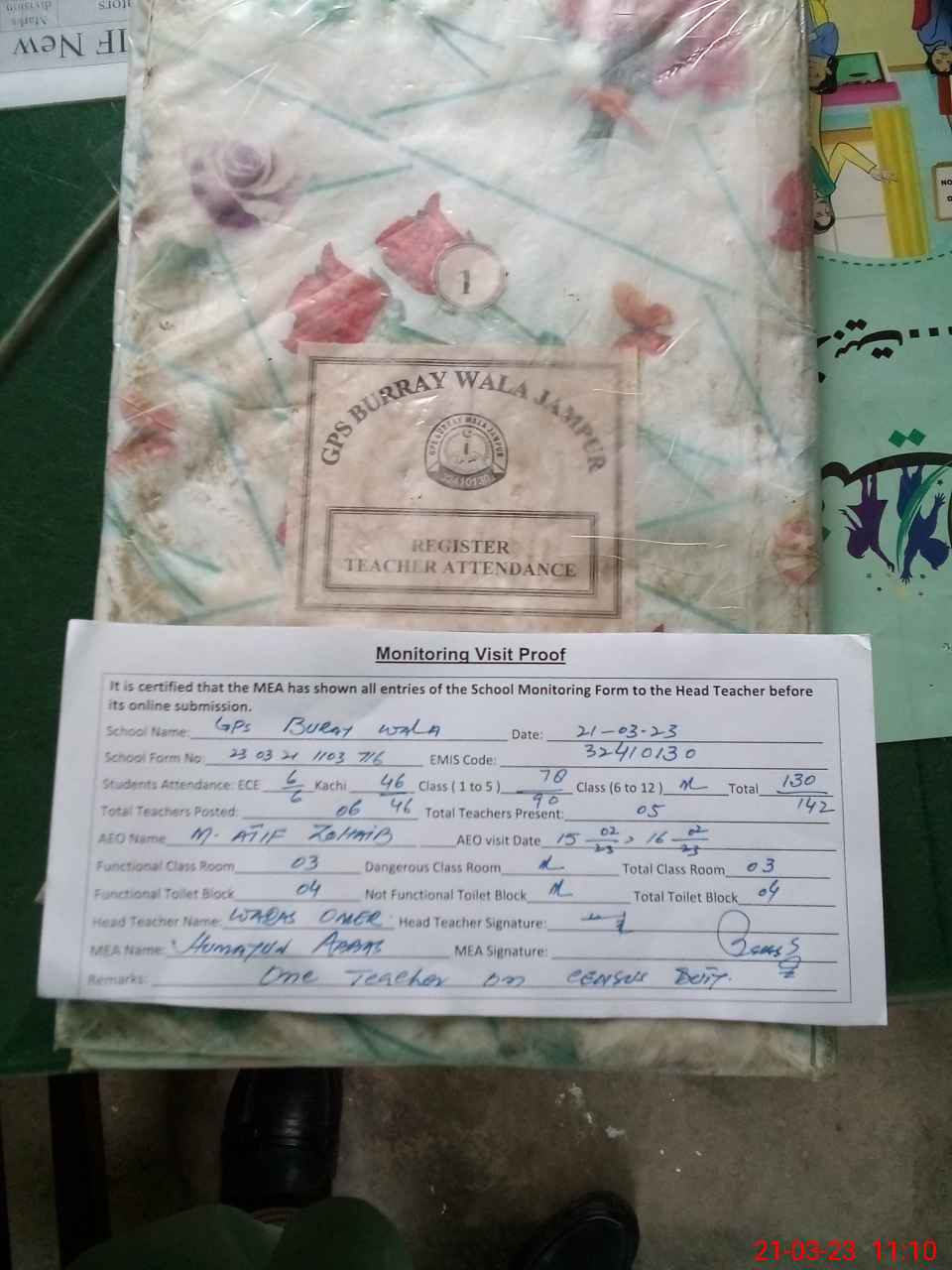 | Attendance Register | Head Teacher | MEA with School | Visit Proof |