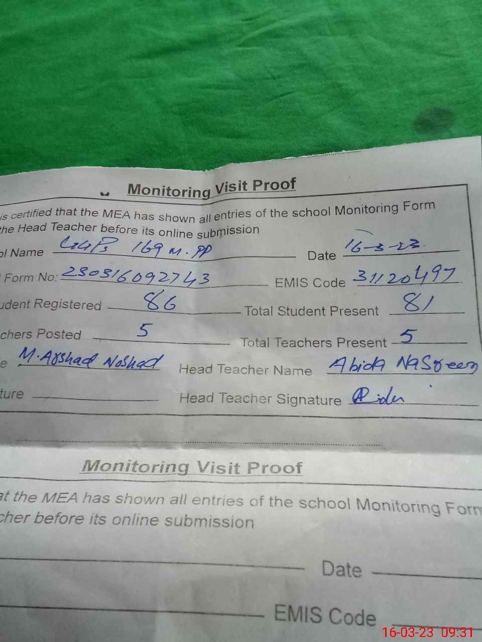 | EMIS Code: 31120497 | Name of School: GGPS 169/M BASTI P.P | |||