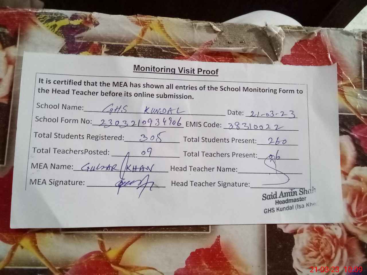 | EMIS Code: 38310022 | Name of School: GHS KUNDAL | |||