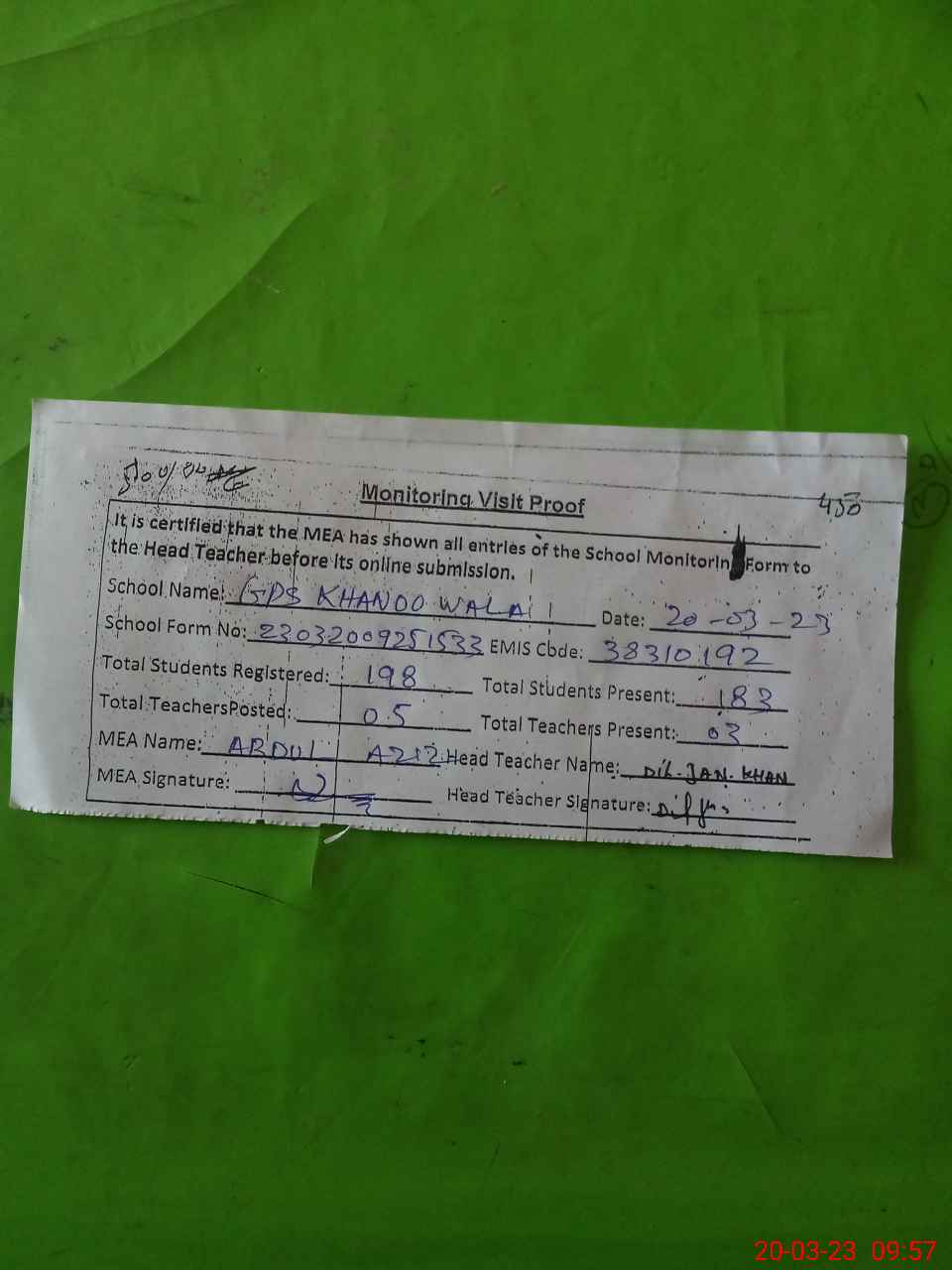 | EMIS Code: 38310192 | Name of School: GPS KHANOO WALA | |||